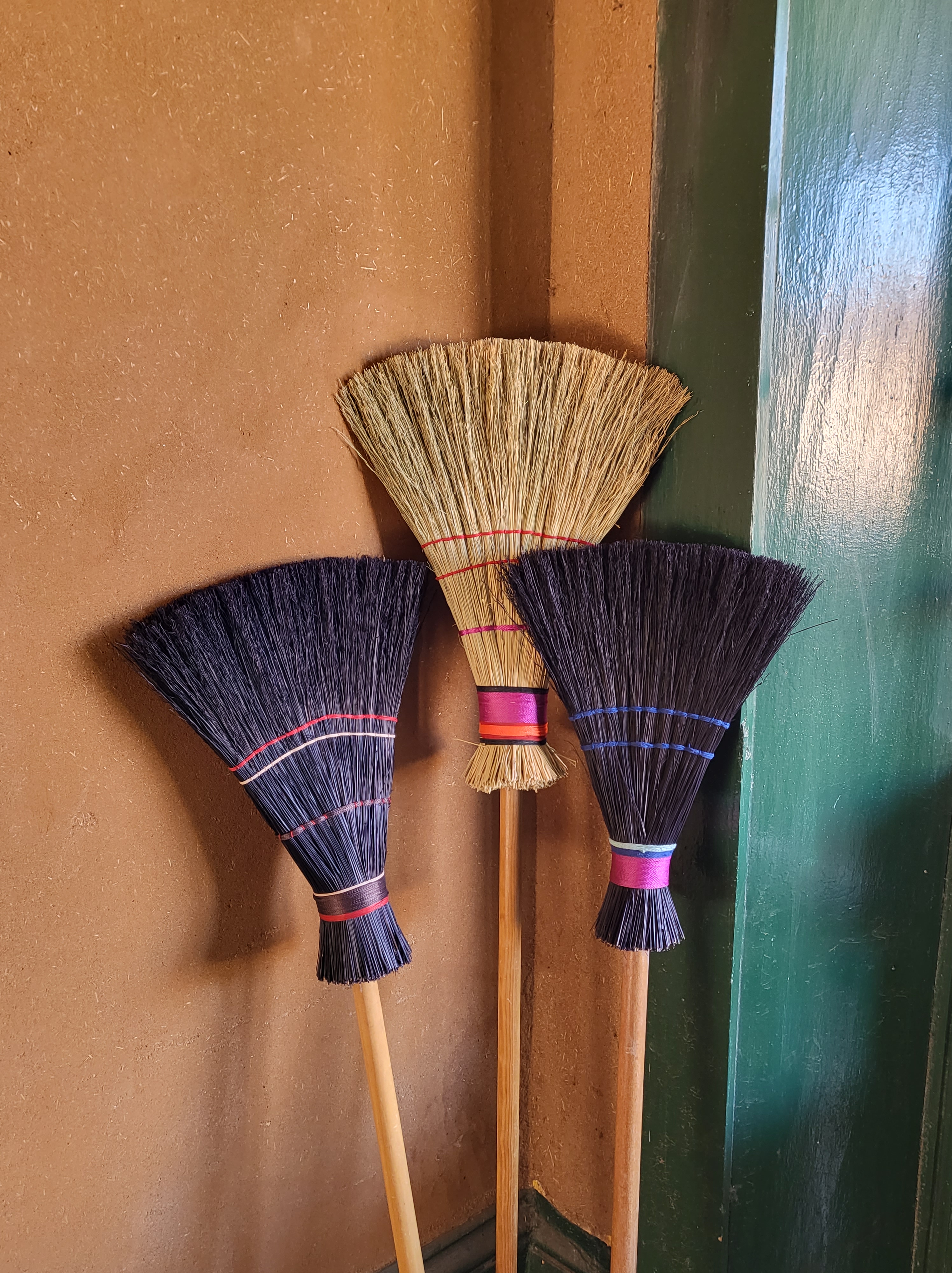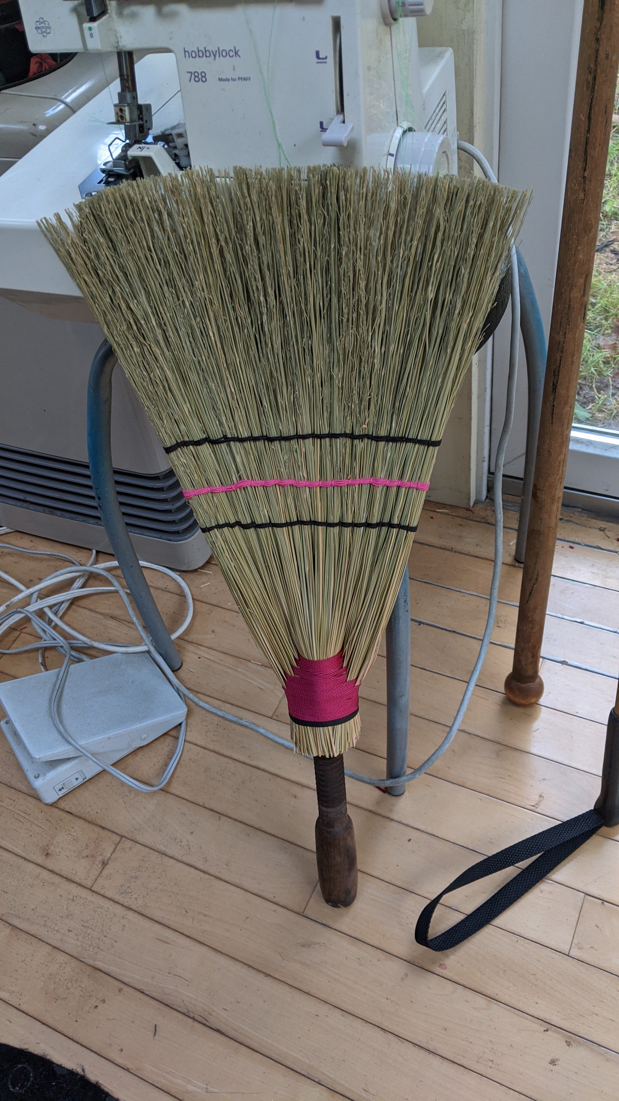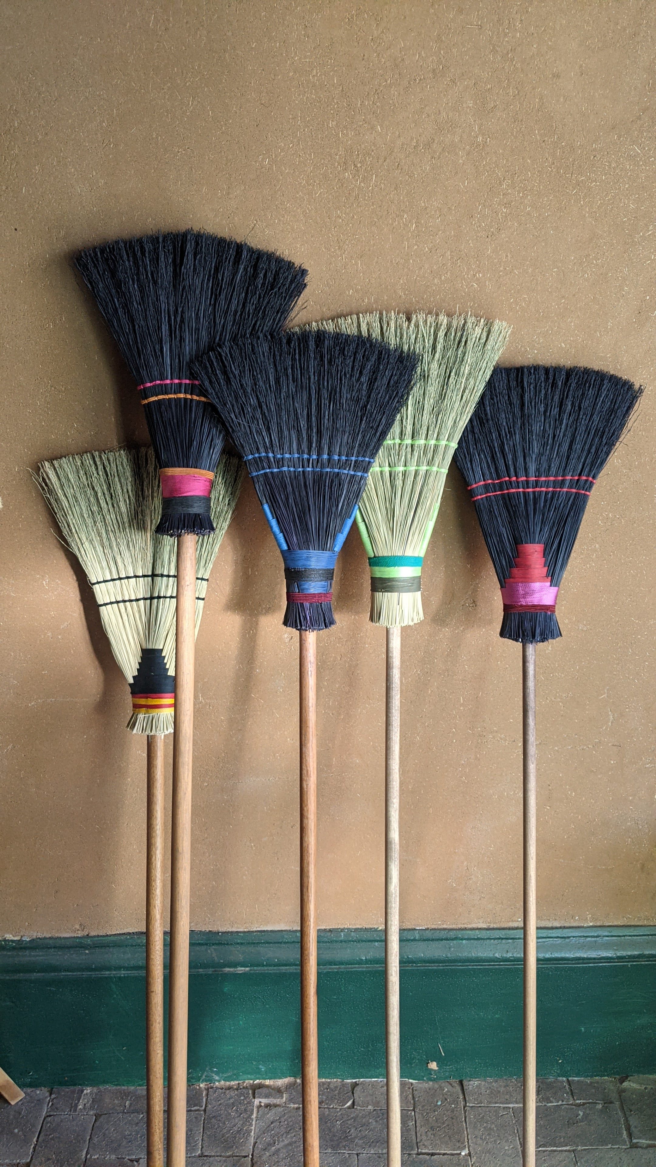 All my brooms are made entirely by hand and each one is unique. I use broom corn/ hurl grown in Mexico and my handles are a combination of dowels, poles, discarded tool handles, lone ski poles, doorknobs and various found objects. I make full size sweepers as well as whisks and smaller brooms. They are fully functional and meant to be used. See my newest work and what is available to purchase on Instagram @thinairgoods message me for prices, availability and shipping.